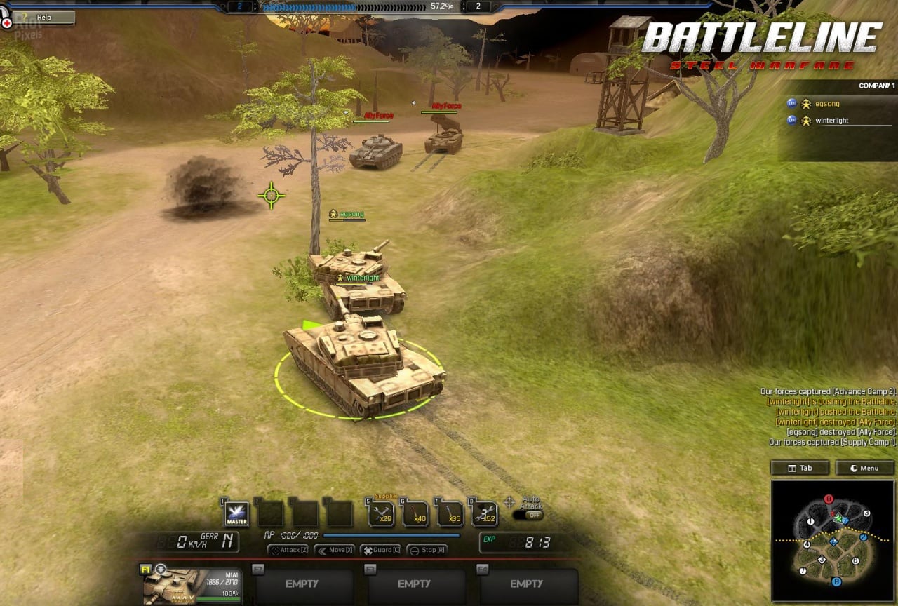 Battle Line: Steel Warfare Дата выхода 1 янв. 2015 Разработчик Creant Жанр Стратегии, Симуляторы Торрент ожидается Добавьте в избранное, чтобы следить Battle Line: Steel Warfare предлагает главному персонажу удивительную возможность взять под управление танк. При этом данная боевая единица может быть произведена в любую историческую эпоху. Пользователь может выбрать как современный танк из 21 столетия, так и первые модели этих боевых транспортных средств из Первой мировой войны. Во время онлайн прохождения можно включить как многопользовательский режим, так и одиночную кампанию. Если присутствует общий враг, то желательно найти союзников в лице других геймеров по сети. Кроме этого, можно сформировать совместные гильдии и концерны. Для ведения вооружённого конфликта в Battle Line: Steel Warfare необходимо выбрать любые танки из самых разных стран. Это могут быть машины, произведённые в США, СССР, Германии, России, Франции, Республике Корее и других. В меню настроек можно выбрать самые разные типы танков – от лёгких до тяжёлых, Т-64, Т-55, Т-34, К21 и множество остальных. Для победы в сражении нужна не только хорошая бронированная техника. В игре большое значение отдаётся стратегическому и тактическому планированию совместных операций.Игровые баллы необходимы для того, чтобы добавлять новые типы вооружений на танк, формировать его собственный внешний вид, производить оснащение машины вспомогательным боекомплектом. Новые виды механизмов и навыков открываются в игре не сразу, а по мере её прохождения и накопления опыта. Различные миссии помогают находить комплекты для ремонта танков. С их помощью можно ремонтировать как свою боевую машину, так и технику союзников, причём прямо во время сражений. Благодаря такому подходу одержать победу в бою можно даже в ситуациях, когда обстановка складывается не в пользу протагониста. Танками можно разрушать почти все объекты или другую технику. Они сметают всё на своём пути. Скачать торрент Скриншоты Показать больше Видео из игры Скачать БЕЗ торрента прямая ссылка через uTorria Системные требования ОС: 7, 8, 10 Процессор: Intel Core 2 Duo Оперативная память: 2 ГБ Видеокарта: AMD Radeon 9500 Место на диске: 4 ГБ В реальном времени, Стратегии в реальном времени, Война, Военные действия