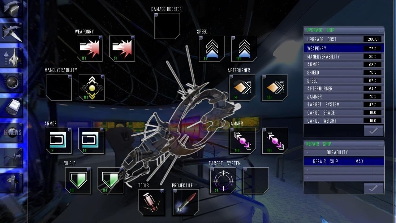 Всего для игрока доступно более 14 видов космолётов, которые подлежат дальнейшей прокачке, а сам главный герой может изучать одну из 10 профессий для профессионального роста с целью обогащения. Деньги нужны для торговли с НПС и получения необходимых ресурсов и предметов. Цены будут разниться в разных системах, из-за чего следует быть внимательным и изучать экономическое устройство.