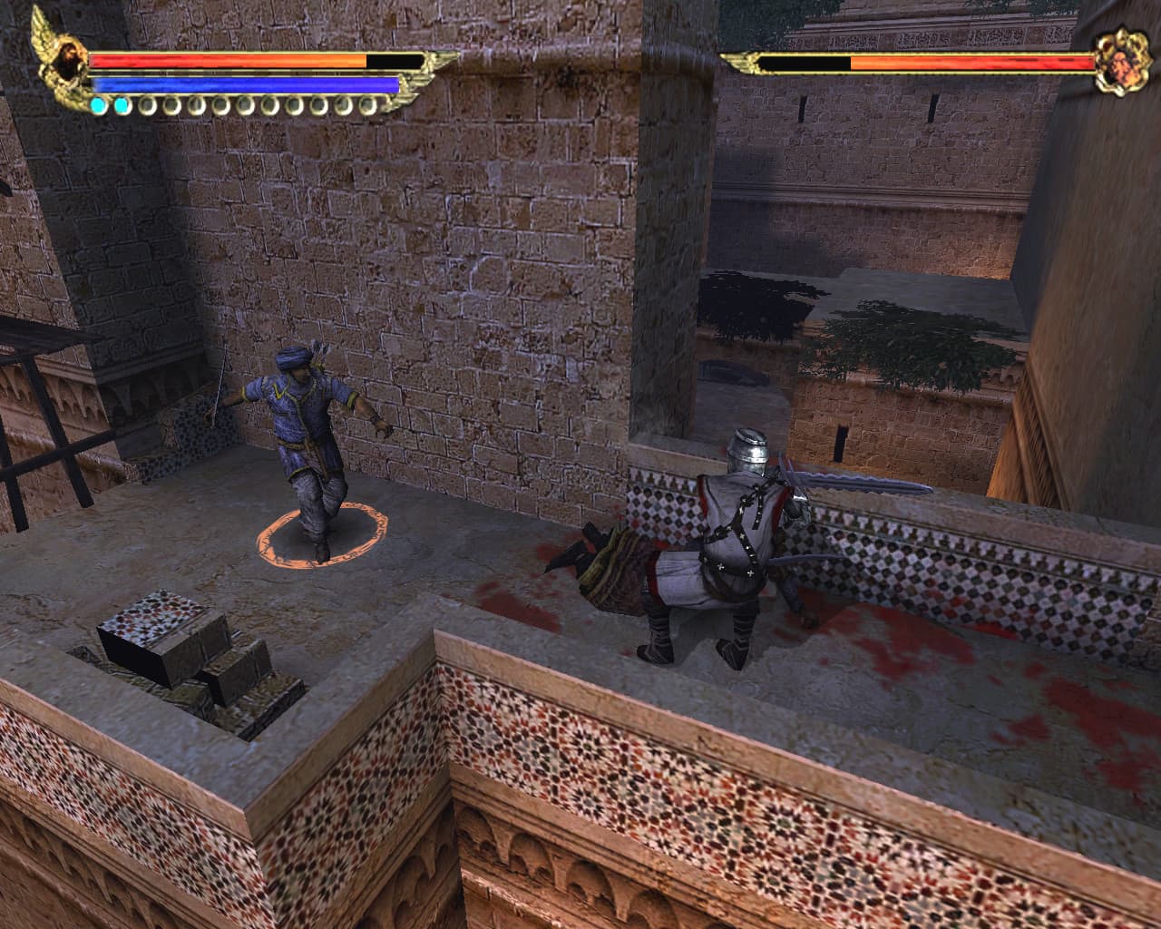 Главный герой может сражаться несколькими видами оружия ближнего боя: меч, топор и булава. Из дальнобойного оружия доступен лук. Во время стрельбы игра переключается на вид от первого лица, а сам протагонист не может двигаться. По уровням разбросано множество модификаций и улучшений, среди которых булава в виде змеи, которая может наносить большой урон. Среди специальных возможностей так называемые "божественные способности", которые может применять рыцарь против супостатов. Всего в Knights of the Temple: Infernal Crusade более 40 видов противников, встречающихся на протяжении 14 глав, которые представлены монастырями, базарами или крепостями крестоносцев Священной Земли.