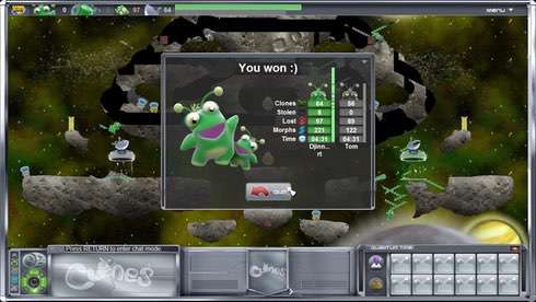 Многопользовательский режим позволит устроить состязание между 16 геймерами, разделенными на 8 команд, что создаст настоящее безумие на карте и подарит незабываемые эмоции от онлайн составляющей игры "Клоны". Поиск серверов выполнен с помощью удобного встроенного браузера, где можно выбрать зону поиска: интернет или локальная сеть. Кооперироваться со вторым человеком команды можно в текстовом чате, который можно использовать и для дезинформации противников.