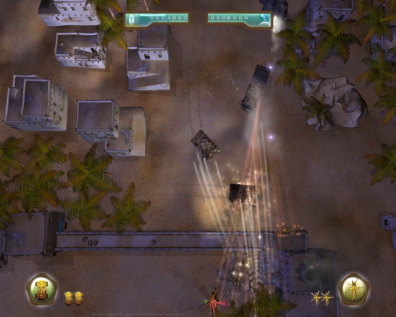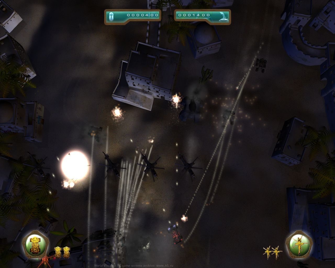 Следуя такой логике, очевидна возможность играть за одним компьютером двум геймерам. Таким образом, кто-то может сражаться на суше, а кто-то в воздухе, а в морских миссиях пересесть на судно. Количество врагов даже на одной карте может достигать нескольких сотен, при этом все они разрушаются буквально с пары точных попаданий. Но разработчики также добавили на каждый уровень боссов невероятных размеров. Чтобы справиться с ними нужно долго вести непрерывный огонь и при этом уклоняться от ответного. Они наносят огромный урон, а потому несколько попаданий и уровень может закончиться поражением. Из убитых противников также выпадают различные бонусы и аптечки для восстановления здоровья.