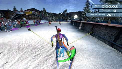 Главным плюсом проекта РТЛ Биатлон 2007 становится ничто иное, как реалистичная физика. Здесь не выйдет просто жать вперед и надеяться на то, что человек придет к финишу первым. Предусмотрена механика, которая также предусматривает усталость, а потому необходимо регулировать скорость на различных этапах гонки. Канонично, помимо катаний на лыжах, необходимо заниматься также стрельбой по мишеням. Доступны две позиции – стоя и лежа. В последней попадать несколько проще. Отстрелявшись важно снова продолжать движение и так бесконечно – пока не закончатся карты. Информация о текущем заезде выводится справа вверху экрана, где пользователь может увидеть свою позицию, текущую скорость передвижения и время, которые отсчитывается с момента старта.