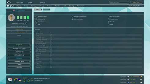 Участие в каждой лиге диктует собственные правила, которые перенесли в игровой проект. Начальство устанавливает сезонные цели, а процесс найма зависит от лиги. Непрофессионалы играют бесплатно, поэтому нужно их поддерживать. Геймер сможет создавать свои игры, которые может использовать во время матчей. Статистика позволяет отслеживать прогресс отдельных спортсменов и сборных в целом, что позволит вовремя вносить нужные коррективы.