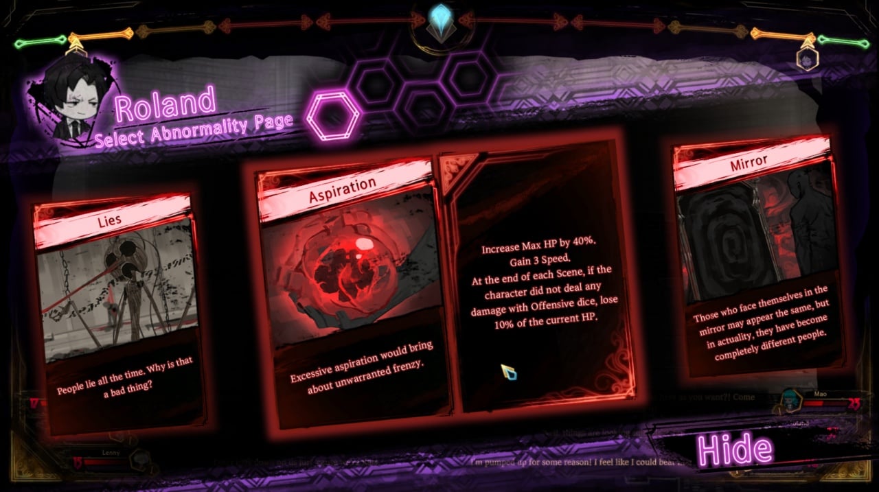 Library Of Ruina - это сюжетное дополнение Lobotomy Corporation, перешедшее в формат карточной ролевой игры. Игроку предлагается стать владельцем библиотеки и увидеть историю трех героев: Анжелы, Сефироте и Роланде из "Корпорации Лоботомии". Однако способ пополнения книгами весьма необычный - требуется убивать врагов, которые после поражения превращаются в книжки. В здание будут наведываться различные враждебные NPC. Чем интереснее книги, тем интереснее гости будут посещать библиотеку. Множество рукописей хранят свои секреты.