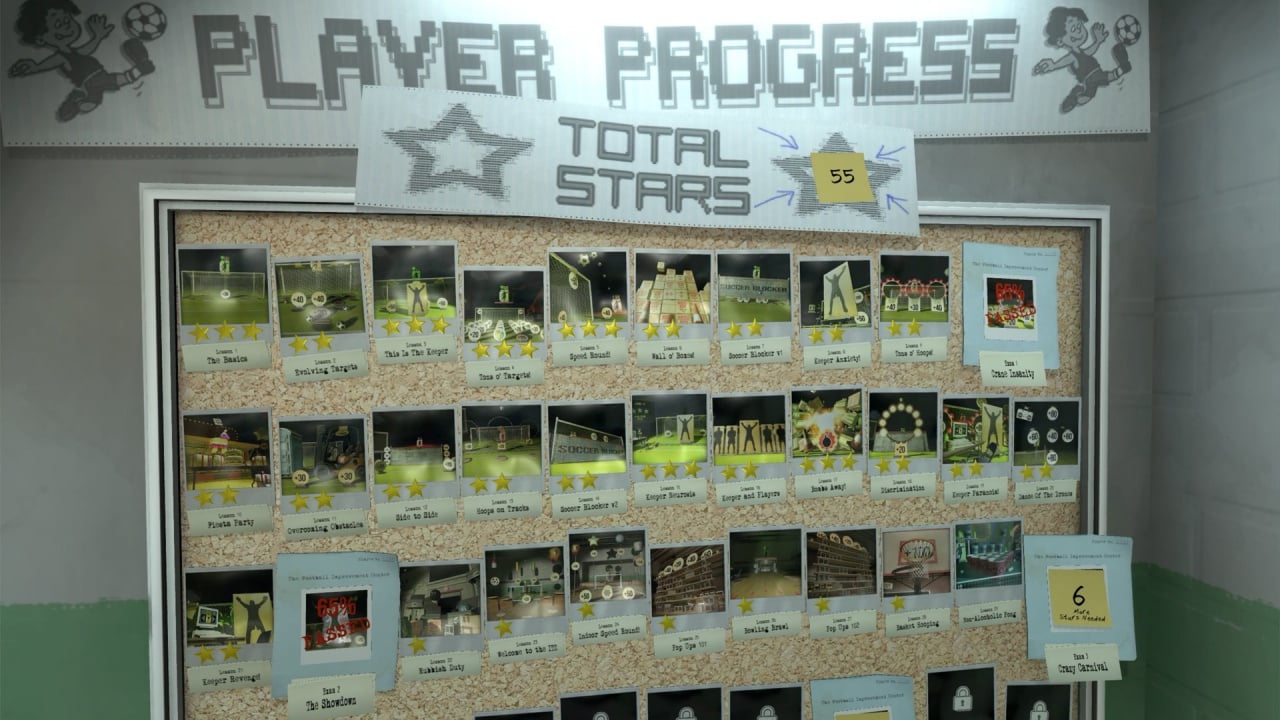 В первоначальных помещениях испытания представляют собой самые безумные задачи, где требуется не только мячом разбить стену из блоков или лопать воздушные шарики, но и пытаться выбить как можно больше очков из вращающегося колеса, на котором прикреплен манекен. Также присутствует огромный манекена в виде обезьяны. Игра создана для шлемов виртуальной реальности, таких как Valve Index, HTC Vive и Oculus Rift.