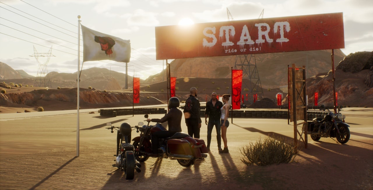 Создатели ввели опцию переключения вида от первого и третьего лица. На трассе встречаются различные ивенты. К примеру, сексапильные девушки попросят разобраться со сломанным двигателем их автомобиля. В случае успеха они наградят протагониста. На ночлег, еду, починку и топливо понадобятся деньги. Мотоциклист будет зарабатывать валюту в азартных развлечениях внутри забегаловок и кабаков.