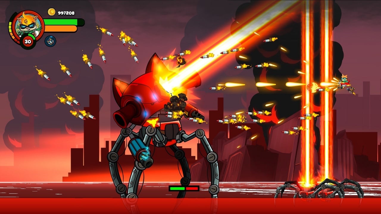 Также валюту можно потратить на покупку и апгрейд самолета (тут около 6 видов истребителей), приобретение щитов и главного или второстепенного оружия. Пострелять дают из пулеметов, лазеров, бластеров, огнеметов, гранатометов и плазменной пушки. Благодаря системе прокачки пушистый летчик сильнее дамажит врагов и выносит больше попаданий.
