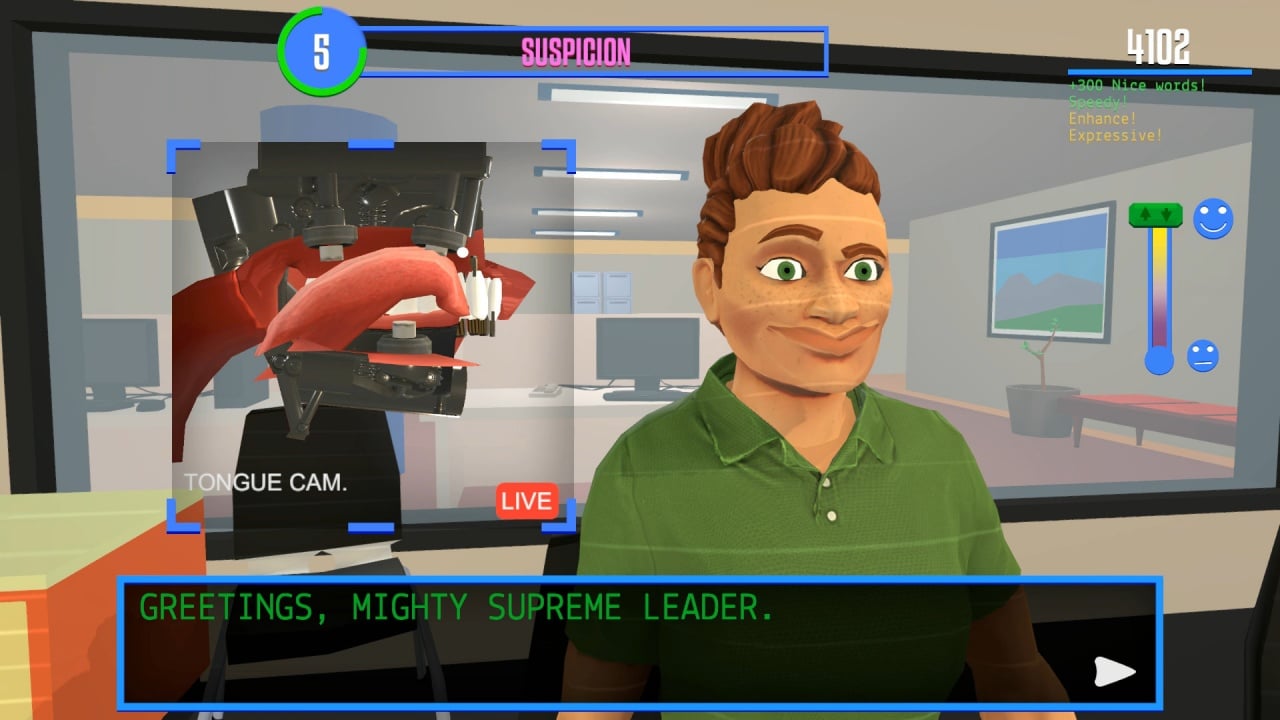 Освойте процесс общения, научите робота правильно шевелить губами и постепенно улучшайте это умение. От перенапряжения, у главного героя в буквальном смысле может закипеть голова, вылететь глаза, а лицо взорваться. Из-за частых ошибок во время тренировки общения, лицо будет вести себя очень странно. Чтобы выбиться в люди, потребуется освоить 10 социальных миссий. Необходимо научиться собеседовать, вести надгробную речь, побывать на медицинском осмотре и даже на свидании с противоположным полом.Главные особенности данного симулятора: