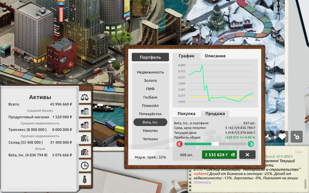 Timeflow – Life Sim RUS v 13.1.10 hotfix / Build 21735057 Новая версия Ранний Доступ Последняя версия Дата выхода 18 янв. 2019 Разработчик Roman Makhmutov Жанр RPG, Стратегии, Инди, Симуляторы Очень положительные на основе 1359 обзоров в Steam 92% Обновлено 28 мая 2025, 16:29 Список изменений Timeflow – Time and Money Simulator – это возможность повысить уровень финансовой грамотности и правильного распоряжения своим временем, позволяя примерить роль одного из людей, желающих построить успешную карьеру. Пользователю предстоит погрузиться в деловой мир и атмосферу накопления большого капитала, вкладывая средства в инвестиции или занимаясь развитием собственного бизнеса, способного приносить огромный доход и пассивно обеспечивать жизнь денежными поступлениями. В Timeflow приходиться развиваться в первую очередь как личность, прокачивая персонажа и получая достижения в рабочей сфере. На выбор доступна масса возможностей для создания благоприятной качественной жизни, начиная от фрилансера и заканчивая руководителем предприятия. Герой получает шанс на лучшую жизнь, вкладывая средства в приобретение дополнительного образования или делая инвестиции в недвижимость, прокладывая дорогу к успеху. Главной целью в игре становиться исполнение жизненно важного желания получить полную финансовую свободу, накопить большое количество денег и получать постоянный стабильный доход от пассивных вложений в растущие, развивающиеся сферы деятельности человека. Предстоит контролировать расписание и придерживаться правильных установок и менеджмента ресурсов, чтобы не тратить время зря и планировать дела для получения продуктивного результата. Скачать торрент Скриншоты Показать больше Видео из игры Скачать Timeflow – Life Sim Ранний доступ Тип релиза Пиратка Portable (Таблетка: Вшита) Версия v 13.1.10 hotfix / Build 21735057 (Полная) Последняя Размер 756 МБ Интерфейс Русский Озвучка Отсутствует Установка: Дополнительный контент: Скачать .torrent торрент файл Скачать БЕЗ торрента прямая ссылка через uTorria Альтернативные раздачи Прямые ссылки Облачные хранилища v 13.1.10.HF 770 МБ Показать Системные требования ОС: Windows 7, 8, 10 Процессор: 2 Ггц Оперативная память: 2 ГБ Видеокарта: Intel HD 3000 Место на диске: 200 МБ Симулятор жизни, Экономика, Тайм-менеджмент, Образование, Песочница, Капитализм, Настольная игра, Пошаговые стратегии, Кастомизация персонажа, Игры в 2D, Изометрия, Решения с последствиями
