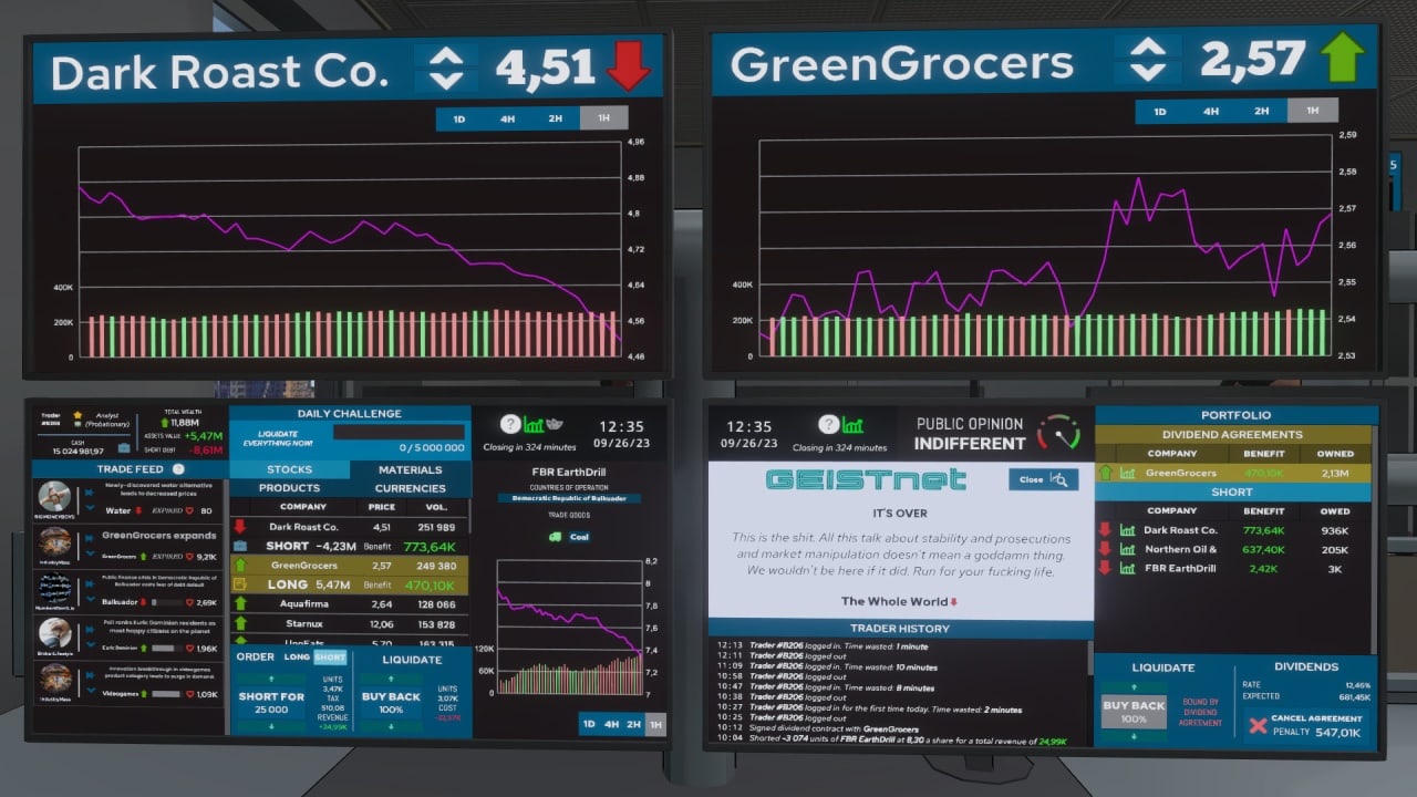 Приходя в контору, вы каждый день получаете новые задачи и цели. Участвуйте в горячих распродажах и различных мероприятиях. Следите за настроениями в социальных группах, чтобы верно спрогнозировать дальнейшие события на рынке. Управляйте ценой сырья, повышая или снижая ее. Подбирайте нужные моменты и скупайте акции. Читайте последние новости и будьте в курсе глобальной экономической ситуации.