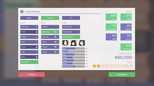 Повышайте популярность звезд и привлекайте новых поклонников. Меняйте стратегию, чтобы охватить разные возрастные группы. Нанимайте сотрудников себе в помощь, чтобы те занялись логистикой и бухгалтерией. Организовывайте выступления, турне и мероприятия на телевидении. Чем больше людей придет на концерты, тем выше будет прибыль.