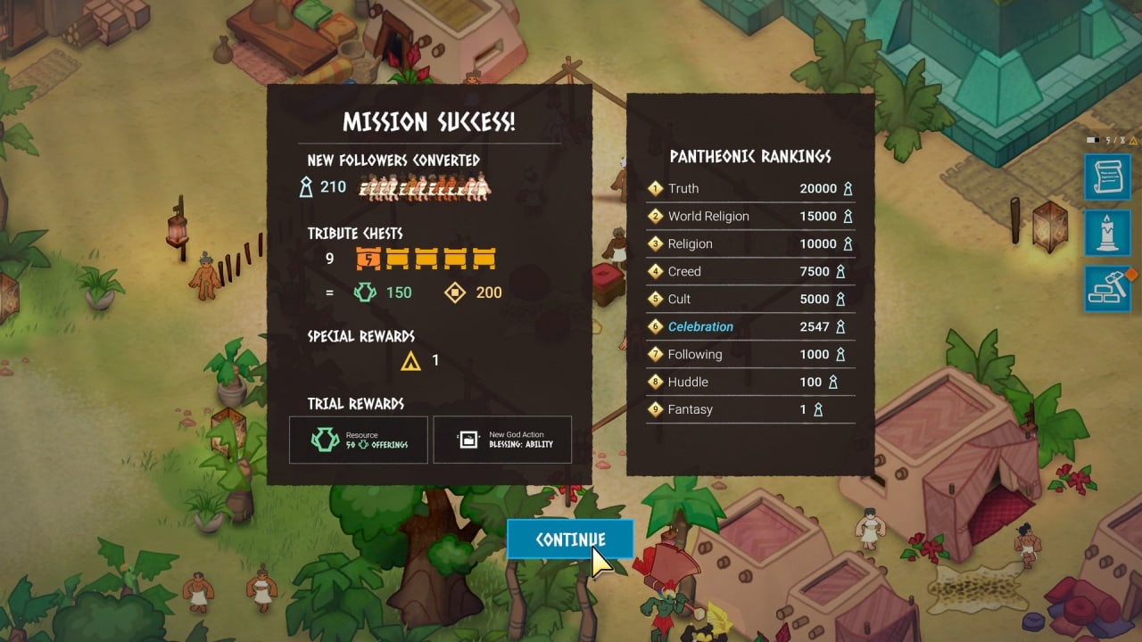 Вера поданных возрастает с повышением силы и прославленности культа. Увеличение данного показателя открывает новые постройки и шанс на дополнительный ход. Стоит помнить, что вера адептов может пошатнуться, если не прислушиваться к их молитвам.