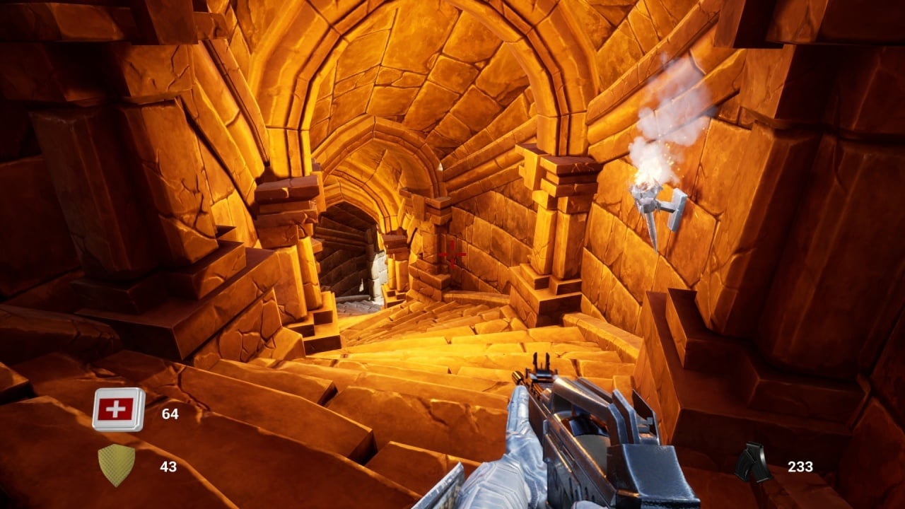 На вооружении находится 7 различных пушек. Вначале геймер получает пистолет, который меняет на дробовик. Первый ствол не нуждается в перезарядке, а второй стреляет с задержкой и требует сбора боеприпасов. Путешествуя по карте, пользователь находит все более мощное оружие. Постепенно появляются новые противники, и увеличивается число врагов. Персонаж может бегать, прыгать и стрелять. Для перемещения между локациями порой нужно будет нажимать на кнопки, открывающие двери, и пользоваться порталами.