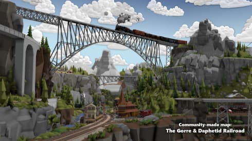 Ключевая особенность проекта – высоко проработанные паровозы, управление которыми возможно как с видом сверху, так и от первого лица с кабины. Выбирайте тип состава из нескольких доступных: дизель, пар и электричество. От этого зависит симуляция поведения, и способ управления. Помимо этого, присутствует динамический цикл смены дня и ночи, а также разнообразные биомы, с особенной погодой и местностью. Проводите электричество в построенные объекты, либо создавайте воздушные провода для работоспособности.
