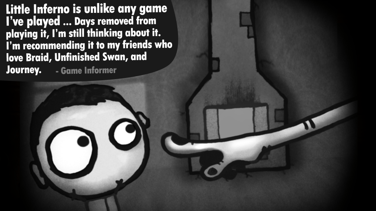 Little Inferno RUS v 2.0.3 + DLC Новая версия Полная версия Последняя в альт. раздачах Дата выхода 19 ноя. 2012 Разработчик Tomorrow Corporation Жанр Инди, Приключения Крайне положительные на основе 8947 обзоров в Steam 96% Обновлено 26 января 2025, 04:13 Список изменений Little Inferno – казуальная история о мальчике, что сидит перед камином, стараясь не пропустить в комнату лютый мороз. Огонь будет поглощать всё до чего дотянется. Ребенок начнет отдавать последние вещи, вплоть до игрушек, не пощадит даже письма от родителей, которые окажутся в ненасытном пламени. Но его ничего не остановит в надежде спастись от холода, что пробирается во все открытые щели. Но не только он будет согревать сердце героя. Соседская девочка, живущая в квартире напротив, будет регулярно присылать письма, где описываются ее дни и надежды. Также, она будет передавать подарки, которые можно оставить или сжечь. Чтобы добраться до финала и, возможно, встретиться с подругой, в Little Inferno нельзя допустить угасания огня. После сжигания предмета, появляются монеты, которые собираются при клике на них. Во внутриигровом каталоге, можно приобрести различные предметы, для отправки их в камин. Это могут быть быстро горящие шляпы или плюшевые мешки. А могут быть и большие автобусы, животные или роботы. Доставка предметов занимает время, от нескольких секунд до длительных минут. В течении которых, нужно поддерживать пламя, иначе прохождение завершится. Чтобы товар приходил мгновенно, присутствуют марки. Они тратятся медленно, но будут незаменимыми при необходимости быстро заправить костер. Также, присутствует физика, благодаря которой предметы горят разными способами. В начале, есть подсказка, которая описывает как делать комбо. Оно необходимо для получения достижений при прохождении игры. Скачать торрент Скриншоты Показать больше Видео из игры Скачать Little Inferno Тип релиза Лицензия GOG (Таблетка: Не требуется) Версия v 2.0.1 + DLC Размер 424 МБ Интерфейс Русский Озвучка Английская Установка: Дополнительный контент: Примечание Более актуальная версия: v 2.0.3 + DLCнаходится в блоке - Альтернативные раздачи. Скачать .torrent торрент файл Скачать БЕЗ торрента прямая ссылка через uTorria Альтернативные раздачи Торренты Пиратка (Таблетка: Вшита) v 2.0.3 + DLC 329 МБ Скачать Лицензия Steam-Rip (Таблетка: Присутствует) v 2.0.3 + 2 DLC 326.6 МБ Скачать Прямые ссылки GOG версия (Без DRM) v 2.0.1 414 МБ Показать Облачные хранилища v 2.0.1 198 МБ Показать Системные требования ОС: Windows 7, 8, 10 Процессор: 1.5 ГГц Оперативная память: 1 ГБ Видеокарта: Shader Model 2.0 Место на диске: 500 МБ Казуальная, Головоломка, Сатира, Смешная, Короткая, Юмор, Отличный саундтрек, Чёрный юмор, Песочница, Атмосферная, Глубокий сюжет, Мрачная, Игры в 2D, Point and click, Сюрреалистичная