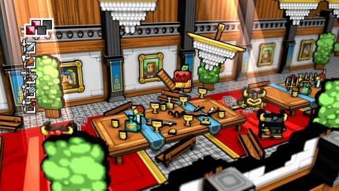 Все тут есть 100 "запчастей". Они обладают разными свойствами: увеличивают HP или урон, позволят ходить по лаве и т.п. Здоровье персонажа отображается в форме кубов. Кроме супостатов опасность на локациях представляют ловушки: падающие секиры, стреляющие пушки, выезжающие из пола шипы, вылетающие из стен дротики.