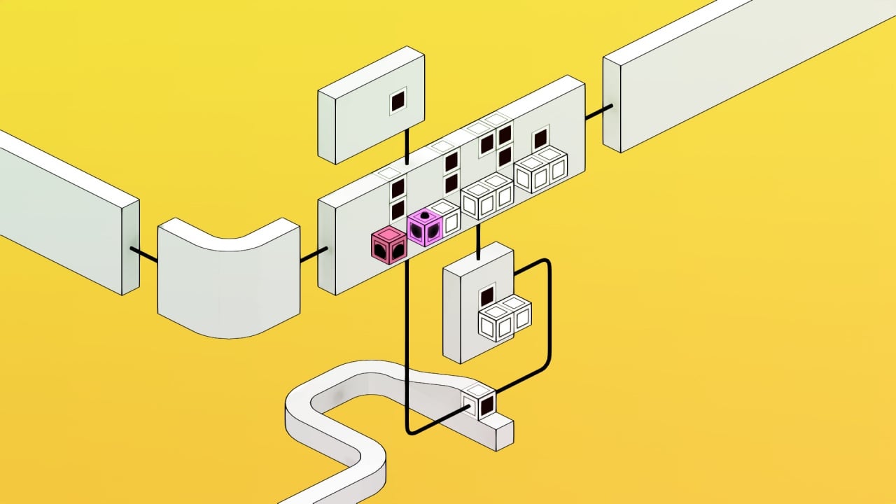 reky - головоломка, выполненная в минималистичном стиле. Сочетает в себе простой дизайн и яркие палитры красок. Сеттинг игры выполнен в архитектурном минимализме и предлагает решить множество пазлов посредством кубов, линий, входами-выходами, порталами и множеством других элементов.