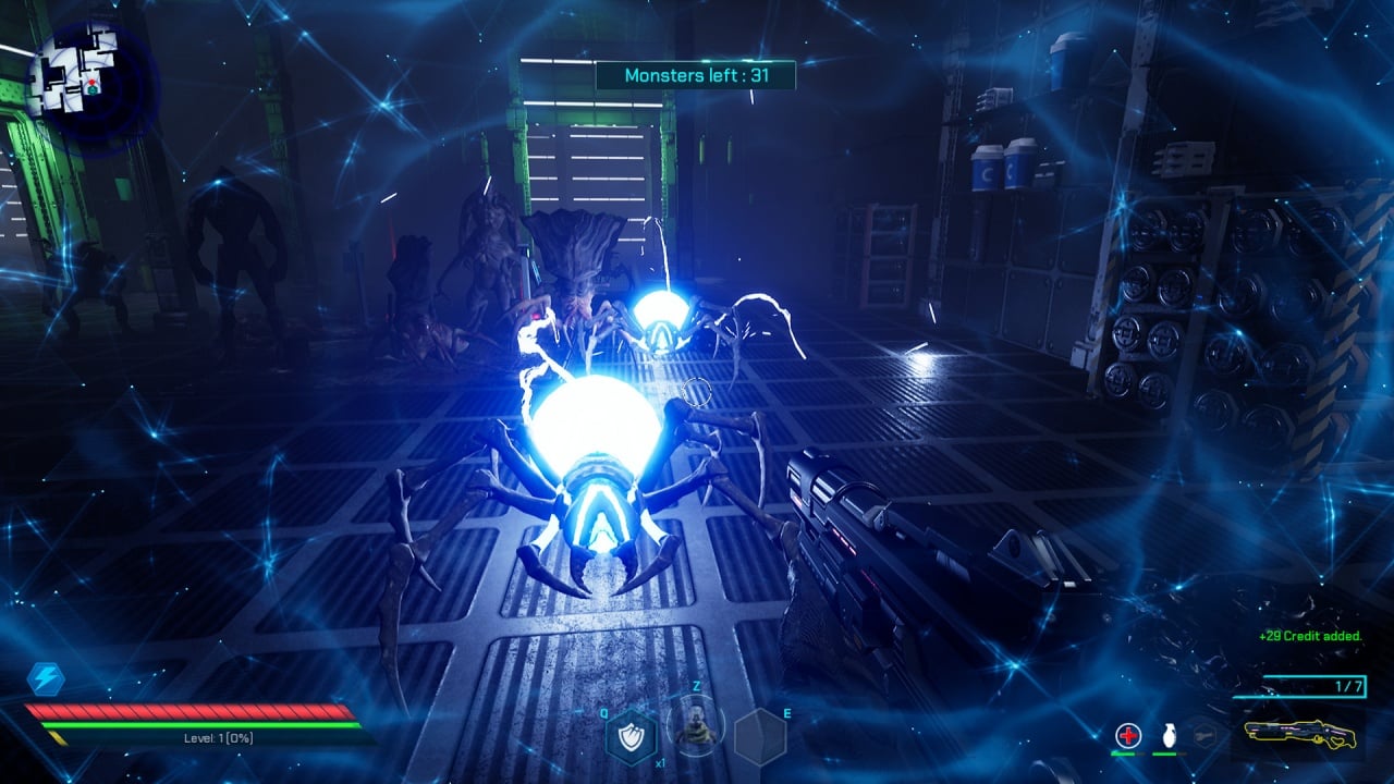 На пути монстры появляются процедурным образом. Каждый противник имеет уникальную характеристику, количество здоровья и урон. Поднимаясь выше, становится все труднее, а оружие и броня протагониста модернизируется. Проходя уровни, открываются предметы, новые умения и гаджеты. Присутствует система улучшения пушек. Найденные Части Оружия применяются для апгрейда имеющегося огнестрела.