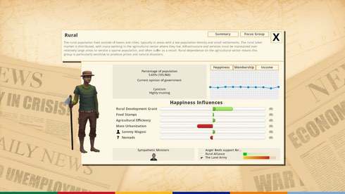 Помимо этого, в Democracy 3 Africa есть данные по числу бездомных, уровню преступности и общей атмосферы среди горожан. Если ошибиться в стратегических подсчетах и случайно снизить количество рабочих мест, на улицы виртуального города выйдут безработные, позже они превратятся в бомжей, а дальше начнут расти показатели тяжких преступлений, краж и проникновений на частную территорию. Уведомление о росте криминальности появляется при достижении критических отметок, поэтому не стоит откладывать решение вопроса на потом. Бороться с преступностью нужно будет как можно скорее, потому что после прохождения каждой главы назначены выборы, исход которых может изменить одна оплошность.
