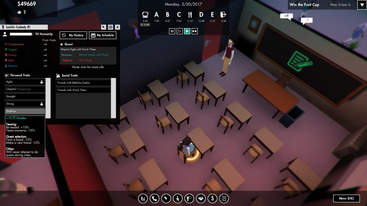 Главной частью игрового процесса становятся взаимодействия с окружающими персонажами в виде учеников школ и их родителей, а также, учителей и прочий персонал. Графически, всё выполнено в низкополигональном формате с применением малого количества деталей при создании декораций, в которых происходит сюжетная кампания. Камера расположена в изометрической перспективе для обеспечения лучшего обзора на локации. Дети подвержены различным проблемам, волнующим их неокрепшее сознание и создающим некоторые проблемы. Если ребёнок не будет счастлив, находясь на территории учебного комплекса, родители обязательно спросят с игрока и потребуют устранить причины недовольства их чад. Пренебрегать рекомендациями не желательно, ведь именно на деньги мам и пап формируется бюджет, который может сильно пострадать при сокращении учащихся и привести к банкротству. Каждый доступный этап прохождения имеет различные начальные сценарии, выступающие в роли определения уровня сложности.