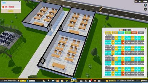 School Owner - симулятор строительства, где в ваши обязанности входит постройка школ и учебных заведений. Вы будете управлять школами самых различных возрастных групп: от начальных классов до колледжа. В ваши обязанности, как владельца, входит планировка зданий, закупка материалов, дизайн интерьеров и многое другое.