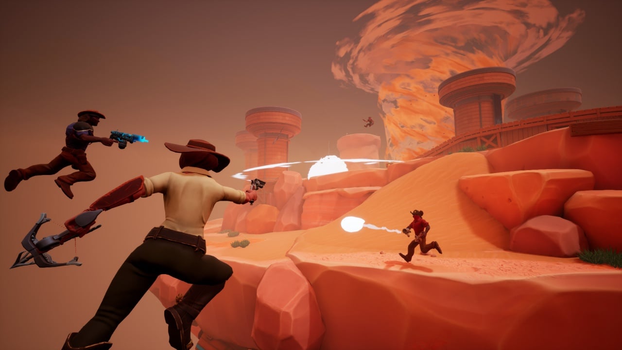 В игре действуют два противоборствующих картеля, пытающихся устранить другую фракцию, как конкурента, чтобы установить в небесных землях единоличную сферу влияния. Основной особенность Sky Noon является то, что в игре нет индикатора здоровья. Все, что вам нужно - скинуть врагов вниз. Крюк для захвата, аркан и лассо - это единственное, что позволит вам выжить, если успеть вовремя зацепиться за предметы. Доступны реактивные и паровые ранцы, позволяющие вздыматься вверх и быстро преодолевать небольшие расстояния. Персонажи могут воспользоваться специальными площадками для усиленных прыжков и телепортов.