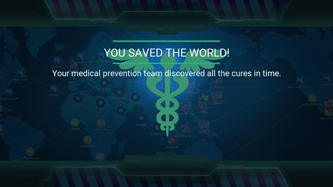 Всего имеется 7 ролей, они взаимосвязаны, а их совместно использованные способности быстрее справляются с нависшей трудностью. Наблюдайте за статистикой и картой всего мира: как распространяются болезни, какие города преодолевают проблему, а где нужна дополнительная поддержка. Из всех ролей вы выберите только несколько из них. Выбирайте из 5 уровней сложности, соответствующих вашим навыкам.
