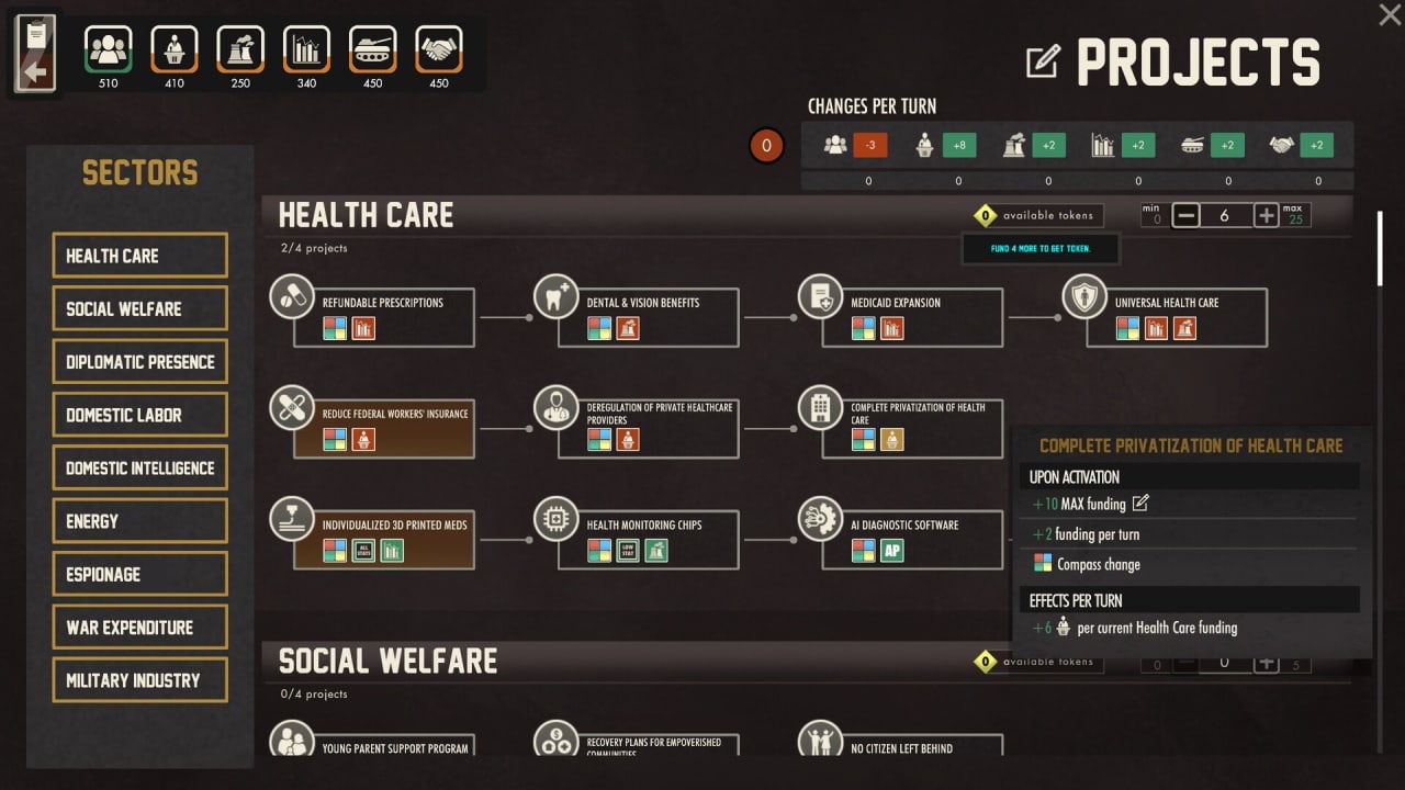 Постоянно к президенту различные посетители. Среди них будут те, кто захочет работать сообща, либо враждовать. Исходя из разговоров, вы наживаете соперников или набираете союзников. В каждом разговоре имеется возможность выбрать несколько реплик, влияющих на исход диалогов. Воспользуйтесь социальными сетями и публикуйте обращения к народу, способные повлиять в положительную или негативную сторону.