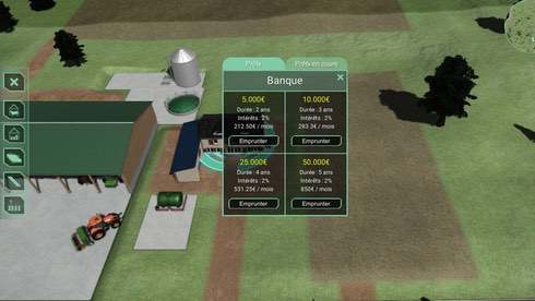 Внутриигровая валюта зарабатывается несколькими путями. Развивайте вымышленные сельскохозяйственные угодья или размножайте животных. Создав новую игру, карта сгенерируется случайным образом. Выбирайте подходящие места и устанавливайте гараж, возделывайте поля, стройте мосты через реки, вырубайте деревья и развивайте области за различными надобностями. Постройка дорог позволит транспорту быстрее передвигаться. Среди животных приобретаются коровы, свиньи, козлы, овцы и домашние птицы.