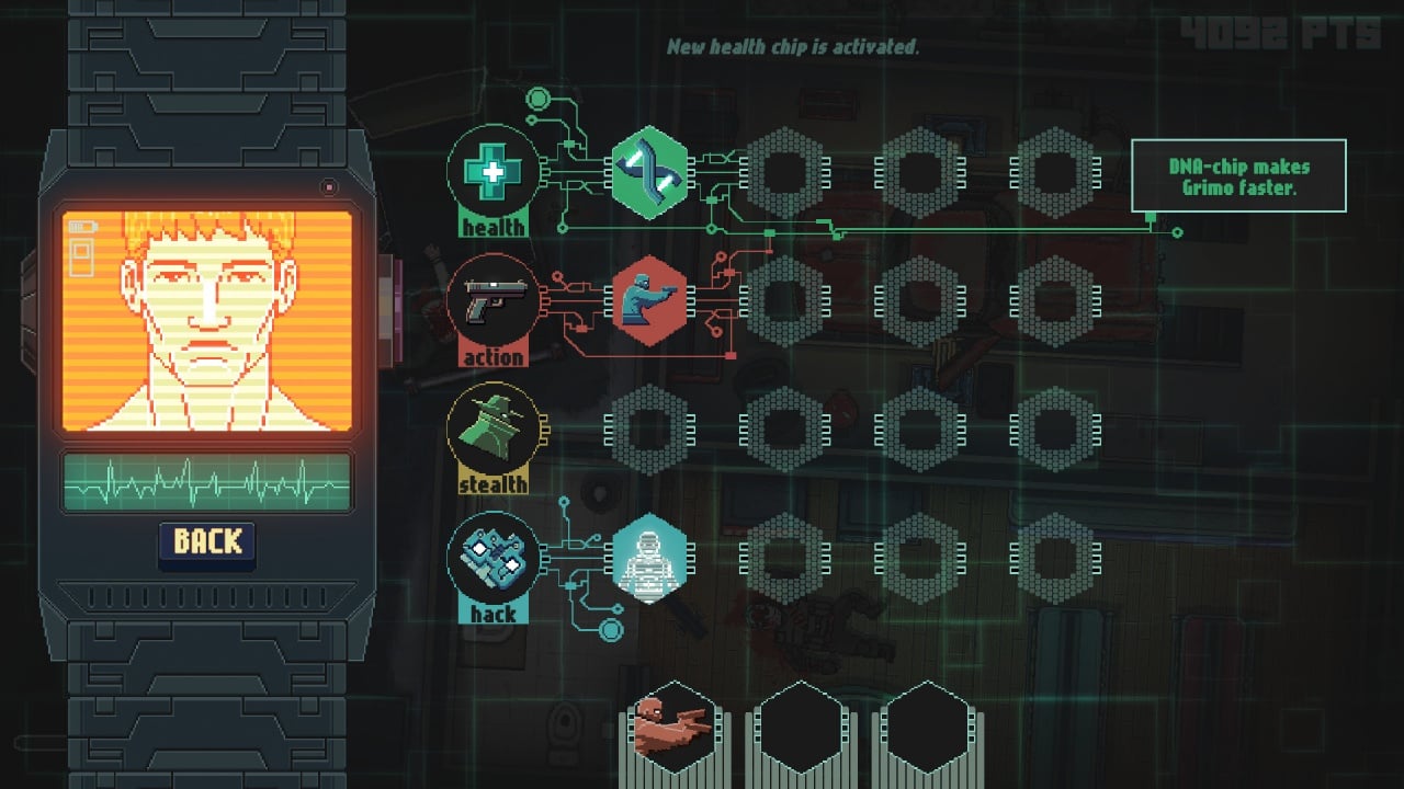 GRIMO - топ-даун экшен с элементами стелса в киберпанк-сеттинге. Игра имеет стильный пиксель-арт стиль и рассказывает про общество, в котором существует Киберцерковь New Era. Эта организация занимается тем, что выслеживает суеверных людей в обществе. Вы играете за героя, попавшего в непростую ситуацию. Различные организации пытаются заполучить таинственный дипломат. Но что в нем такого особенного?