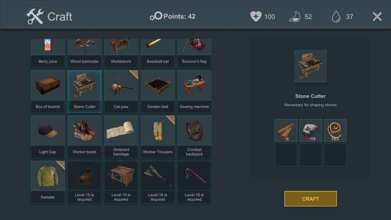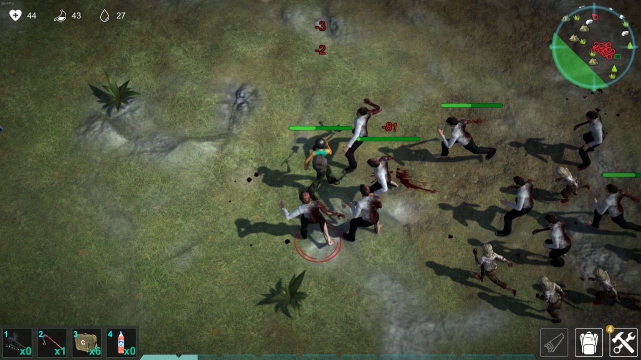 Геймер займется исследованием разных локаций, где можно запастись ресурсами, и бороться с зомби и остальными выжившими - здесь каждый за себя. Протагонисту предстоит не только охотиться и искать продукты и воду, а создавать медицинские препараты. Свое убежище, где можно установить верстаки для создания полезных предметов, игрок улучшает в процессе. Здесь можно крафтить вооружение, экипировку, инструменты - возможности крафта охватывают создание более сотни предметов и вещей.