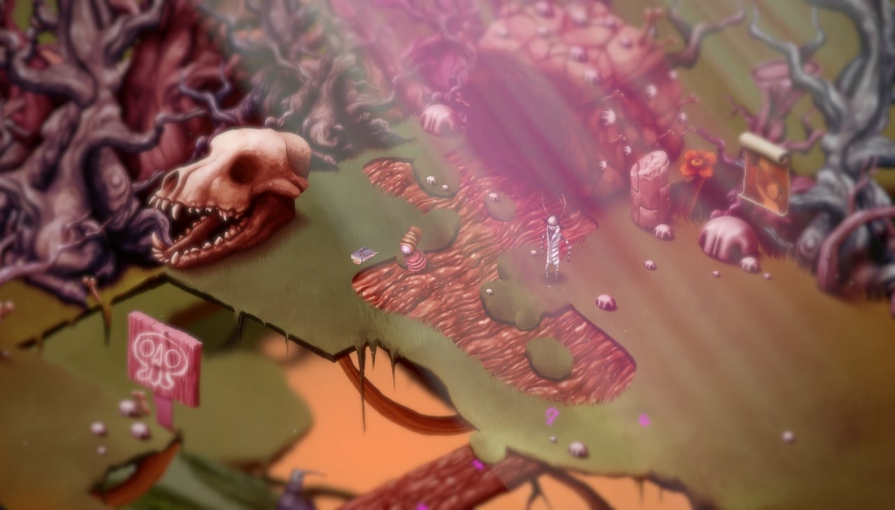 У продукта психоделический визуальный стиль. Вся графика нарисована от руки и местами напоминает коллажи. У игры изометрический вид. Локации представляют собой парящие в космосе библиотеки и архивы. Также встречаются горы, леса и городские улицы. Для персонажа можно открыть новые добивания и костюмы.