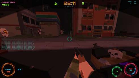 Арсенал составляет: пожарный топор, дробовик, АК-47, ракетница, снайперская винтовка. С собой разрешают носить одновременно все стволы. Персонаж меняет их практически мгновенно. У всего оружия, кроме холодного, есть ограниченный запас патронов. Его можно пополнять. Пушки появляются на карте в одних и тех же местах. Самих локаций всего несколько.