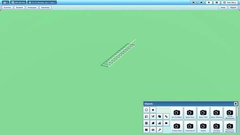 Особенностью игрового процесса будет гибкий и глубокий редактор помещений, позволяющих возвести фундамент и выстроить архитектуру университета с нуля для того, чтобы создать уникальное здание с самобытной структурой. Доступны к размещению: аудитории, конференц-залы, лекционные, актовые и спортивные залы, столовые, холлы, гардеробы, кафедры и кабинеты деканов и ректоров и так далее.