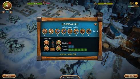 Игроку представлено 7 типов башен, каждую из которых необходимо улучшать для повышения огневой мощи и радиуса поражения. Всего доступно 3 уровня прокачки для каждой возведённой боевой оборонной единицы. Громадное влияние на ход прохождения того или иного этапа, имеет ландшафт, который изменяется до неузнаваемости на территории каждой локации, встречающейся в игре "Битва Королей". Грамотная адаптация стратегии будет первостепенной задачей. Также, на игрока возложена миссия по развитию экономики государства для получения финансирования на защитные сооружения от агрессивно настроенных врагов.