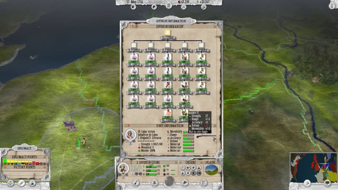 Стратегия The Seven Years War (1756-1763), как следует из названия, посвящена самому масштабному конфликту 18 века, получившему название Семилетняя война. Здесь сражения в Европе и Северной Америке охватывают 110 городов и провинций, а также 13 государств. Юзерам доступно 20 кампаний, где дают поиграть за Пруссию, Швецию, Австрию, Британию и Францию.