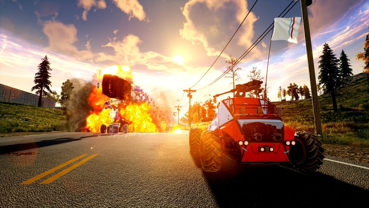Зона тут традиционно сужается и вынуждает участников чаще вступать в поединки между собой. В конце происходит схватка на маленьком участке карты. Взорвавшиеся машины оставляют после себя все собранное на локации добро. На выбор дают 4 автомобиля: Asp, Ligar, Beast, Mantis. Тачки различаются здоровьем, броней, тормозами, ускорением и дрифтом. Для их кастомизации существует 300 предметов. Во время поездок можно использовать нитро.