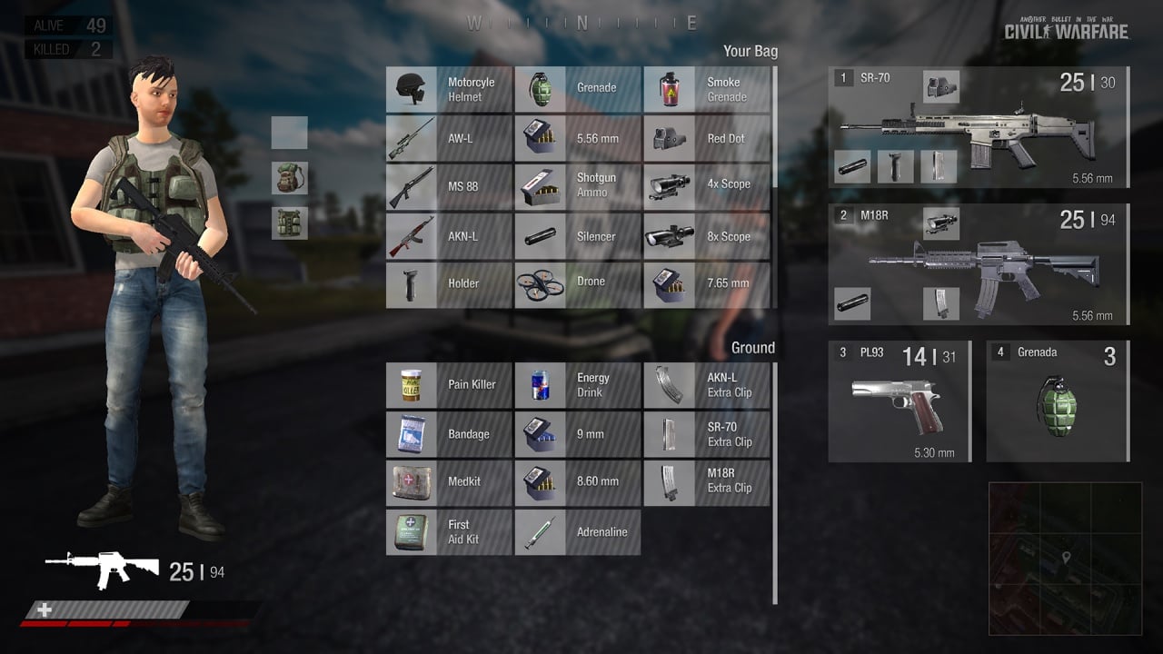 Баттл-рояль в Civil Warfare: Another Bullet In The War очень похож на PUBG. Найденная экипировка отображается на героях. Можно передвигаться по локации на своих двоих или на транспорте. Есть квадроциклы, джипы, пикапы и масл-кары. В дезматче нужно традиционно набить больше фрагов, чем соперник. Тут матчи длятся по 10 минут. А бои проходят на той же карте.