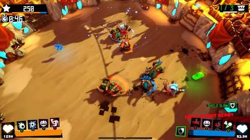 Атаки и заклинания по области помогут уничтожить сразу нескольких оппонентов одновременно. Очки необходимы для разблокировки предметов и скинов, они зарабатываются в кампании и мини-играх. Сражайтесь против ниндзя, огромных и смертоносных монстров, слабых охранников, расставляйте ловушки и подбирайте бонусы. На каждой арене имеются ловушки в виде крутящихся пил, пропастей или стальных шаров, вредящих каждому воину.