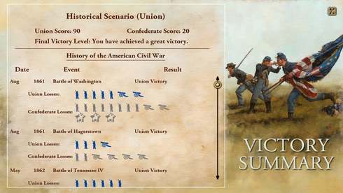 Побывайте в роли главнокомандующего Союза или Конфедератов в Victory and Glory: The American Civil War. Участвуйте в масштабных сражениях, основанных на реальной истории. Контролируйте армии и отряды, участвуйте в знаменитых битвах, рекрутируйте новых юнитов и захватывайте вражеские города. В зависимости от вашего выбора, искусственный интеллект возьмет управление над враждебной стороной и будет всяческими силами стараться уничтожить вас.