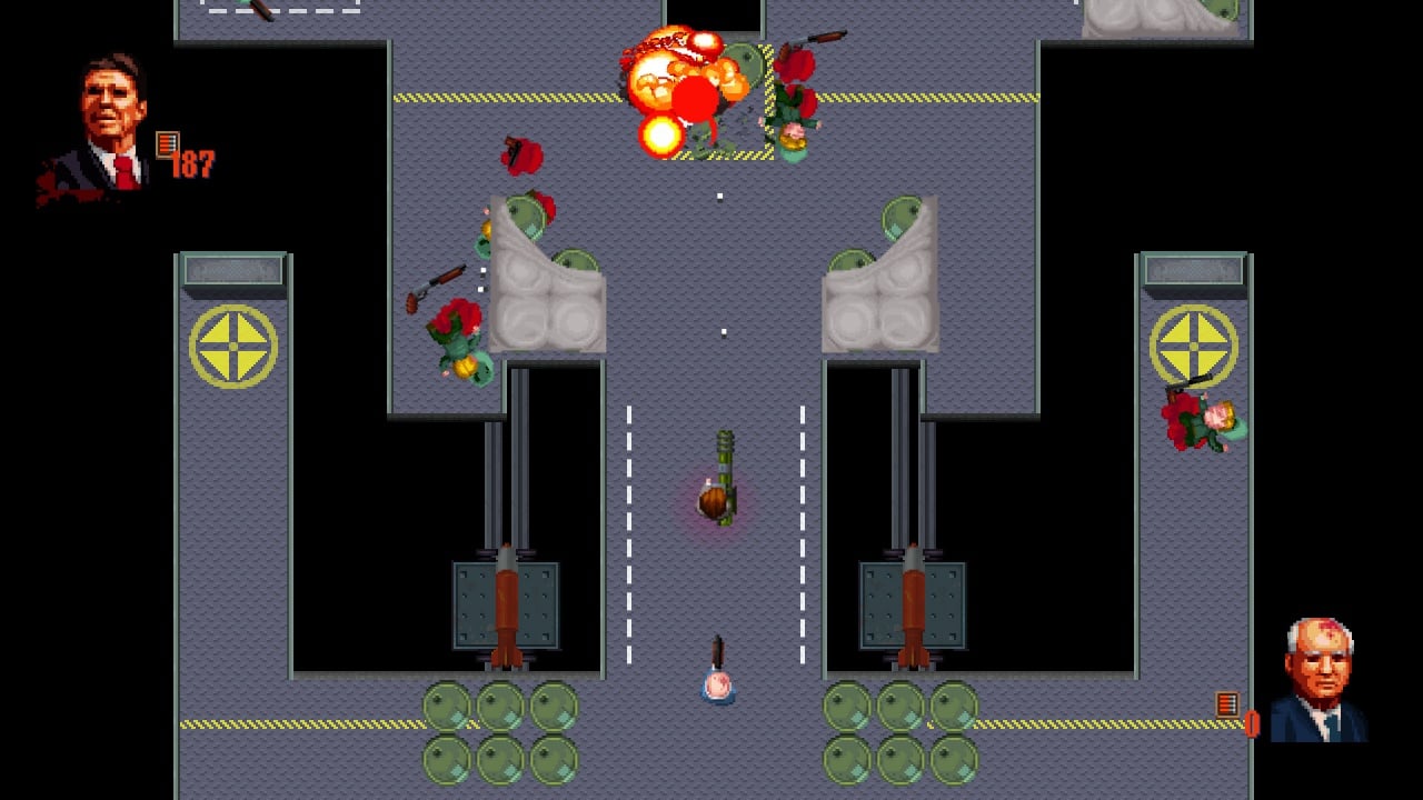 Reagan Gorbachev v Build 17.01.2017 Новая версия Полная версия Последняя Дата выхода 24 фев. 2016 Разработчик Team2Bit Жанр Экшены, Приключения, Инди Положительные на основе 20 обзоров в Steam 90% Обновлено 26 января 2025, 04:47 Список изменений События в Reagan Gorbachev разворачиваются осенью 1986-го года, когда главные за действия Холодной войны, а именно Рональд Рейган и Михаил Горбачев, стали заложниками ситуации. Лидеры потерпели действий военных исследований. Теперь историческим персонажам понадобится забыть про конфликт между странами, объединив свои усилия в сложной ситуации. В противном случае герои погибнут. Предстоит бороться с террористами, которые и поместили представителей сверхдержав в ловушку. Присутствуют следующие режимы: "Одиночная кампания" и "Кооператив". Последний предоставляет возможность играть вдвоем с товарищем, объединив свои усилия. Также можно играть за Трампа и Путина, переносясь в 21-е столетие. Главная задача – выйти из заточения, предотвратив надвигающуюся ядерную катастрофу. Предстоит ходить локациями с видом сверху, что позволяет рассмотреть всех противников на карте. В Рейган Горбачев требуется пройти 32 уникальных миссий. Необходимо передвигаться по пространству, стрелять, маскироваться, маневрировать, пропуская вражеские снаряды. Предстоит проявить стратегические навыки, чтобы перейти на следующий этап. В арсенале у протагонистов будет следующее снаряжение: самурайские мечи, дроты, концы которых имеют смертельный яд, УЗИ, штурмовые винтовки, дробовики, гранатометы, дубинки. Помимо оружия понадобится вступать в рукопашные бои, используя комбинацию приемов. Скачать торрент Скриншоты Показать больше Видео из игры Скачать Reagan Gorbachev Тип релиза Пиратка (Таблетка: Не Требуется) Версия v Build 17.01.2017 (Полная) Последняя Размер 141.59 МБ Интерфейс Английский Озвучка Английская Скачать .torrent торрент файл Скачать БЕЗ торрента прямая ссылка через uTorria Системные требования ОС: 7, 8, 10 Оперативная память: 8 ГБ Видеокарта: Совместимая с DirectX 10 Место на диске: 500 МБ 80-е, Стелс, Политический симулятор, Игры с геймпадом