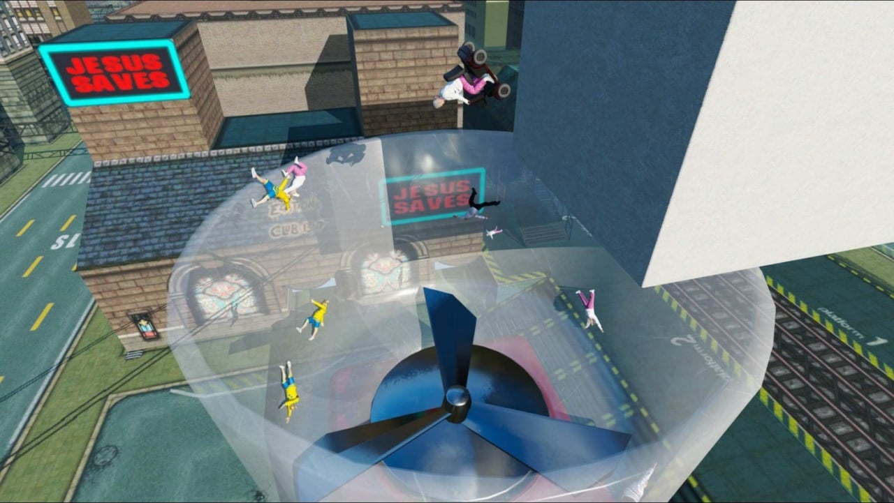 В процессе геймер выполняет разные задания и проходит мини-игры. Здесь можно пригласить друзей, чтобы проверить работоспособность новосозданных треков. Кроме разных приспособлений, гонка обладает многообразием средств передвижения, куда входит все, что имеет колеса, например, тележки из супермаркета, электроскутеры для пожилых людей.