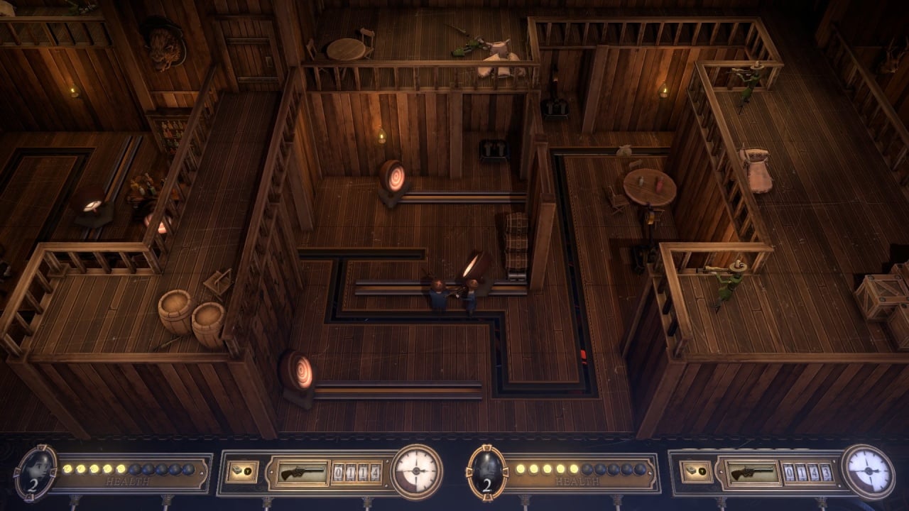 Bartlow's Dread Machine - изометрический твин-стик шутер в сеттинге ретрофутуризма. Игра охватывает период электрического прогресса и предлагает насладиться ярким и насыщенным геймплеем как в одиночной, так и в кооперативной кампании. Вам предстоит пройти 6 уникальных и насыщенных экшеном миров. Совместный режим предлагает еще больше врагов и усложненный тип геймплея.