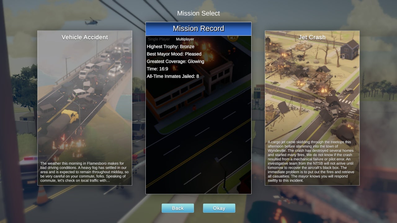 Сюжетная кампания, рассчитанная на прохождение в одиночном режиме, представляет собой набор не связанных между собой уровней на разных локациях, использующих отличающиеся между собой начальные сценарии для создания непохожих миссий, будь то ликвидация разлива химвеществ, взрывы газа и бензина, упавшие электролинии и так далее. Игроку доверяется управление над громадным числом служб, занимающихся экстренными вызовами: полицейский участок, пожарный пост, воздушным транспортом, используемым при тушении особо крупных пожаров, академиями, охранными конторами и так далее. Основная задача – в кратчайшие сроки организовать спасательные работы и постараться минимизировать урон от случившихся бедствий любой ценой.