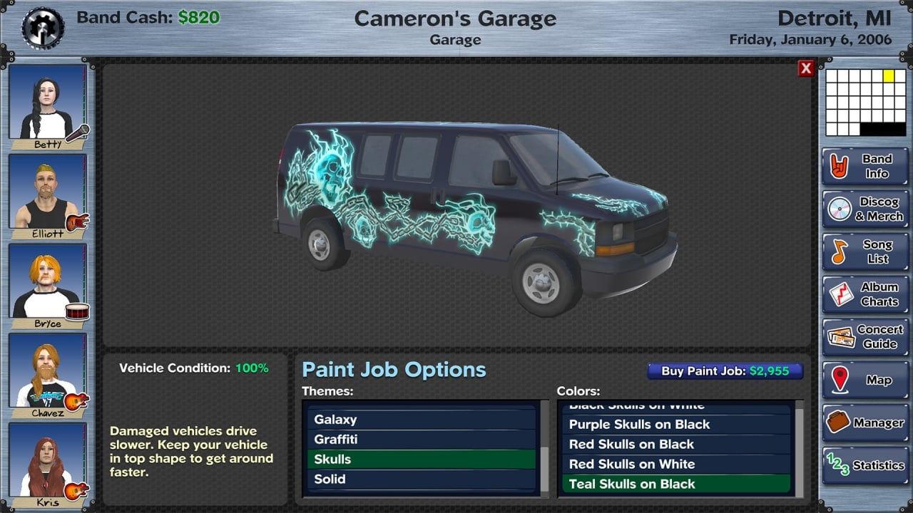 Играя по местным клубам и пабам, вы сможете зарекомендовать себя, обеспечив не только лояльность публики, но и заручиться интересом со стороны продюсеров и менеджеров. Вы можете полностью заняться внешним видом каждого участника. Выбирайте пол, внешность, одежду, рок-атрибутику и многое другое. Фургон вашей группы также доступен для полной кастомизации. Проведите фотосессию для промо-материалов и купите множество декоративных украшений для вашей репетиционной базы или студии.