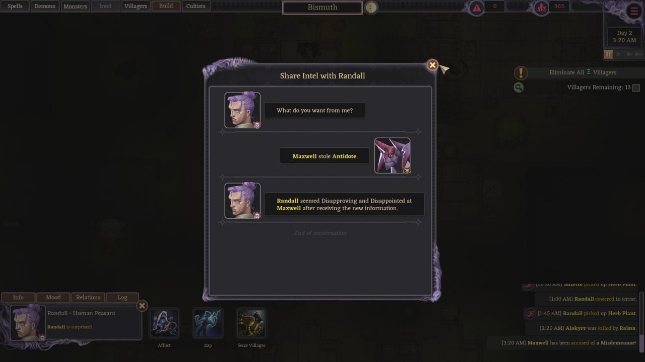 Размножайте диких зверей в Питомнике, чтобы они терроризировали целые деревни. Ваш глаз может видеть всю информацию о людях и наблюдать за их поступками. Ваши прислужники, которых называют Демонами Гнева, готовы исполнить любой ваш приказ. Не церемоньтесь и схватите любого жителя города, чтобы отправить его в центр самой Скверны.