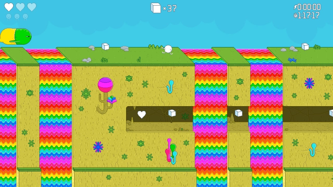 Главным героем одиночного режима является небольшое существо, напоминающее белый шарик с короткими ногами и руками. Виртуальному протеже предстоит длинное путешествие, в ходе которого геймер оценит множество причудливых измерений, с гигантскими отличиями между собой: равнины, украшенные неоновыми лампами, острова, давно покрытые льдами, открытый космос, биомы для экспериментов. Все эти локации заселены определёнными монстрами, от кислотных пауков с вставками неона, до радужных земляных червей и псов, атакующих на дистанции с помощью взрывающихся снарядов. Также, иногда на пути пользователя встают громадные боссы с увеличенным запасом очков здоровья и мощными атаками. Противостоять агрессивно настроенным врагам можно благодаря умению главного героя стрелять собственными детьми, используя их как боезапас.
