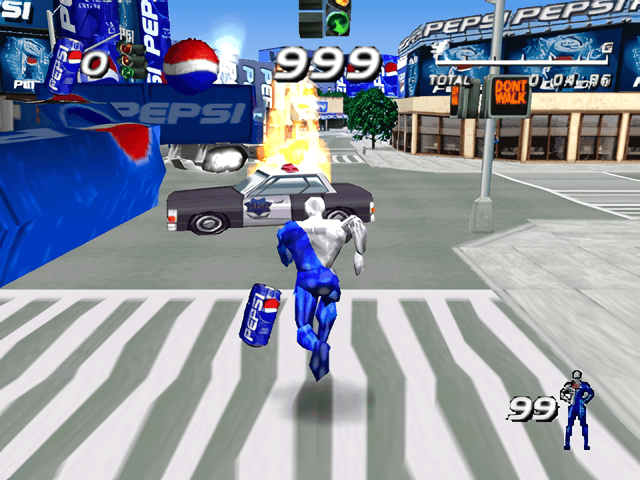 Pepsiman – известная на PlayStation игра в жанре экшен. Главный герой – супергерой Пепсимен, талисман Пепси, вынужден бежать, уворачиваясь от препятствий, чтобы напоить страдающих от жажды людей.