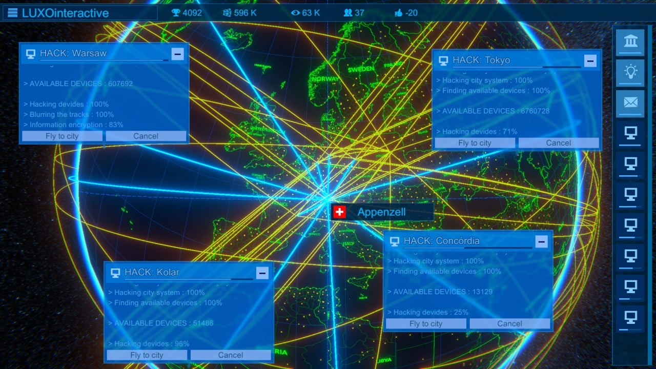 Cyber Attack - стратегия с элементами стратегии и хакинга. Вы будете играть за лидера хакерской группировки. В задачи входит отслеживание связей между крупными корпорациями, следите за правительством и преступными организациями по всему миру. Защищайте человечество из подполья, разоблачайте самых разыскивемых преступников и используйте секретную информацию в личных целях. Однако никто не запрещает вам стать одной из самых преступных хакерских организаций на планете!