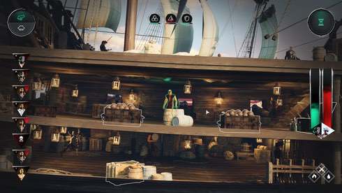 Управление кораблем производится в разрезе, где вы можете наблюдать за внутренностями корабля, перемещаясь между палубами, каютами и трюмами. Каждый отдельный сектор можно прокачивать и улучшать. Здесь же позволяется отдать личный приказ конкретному юниту и максимально подготовиться к предстоящему бою.